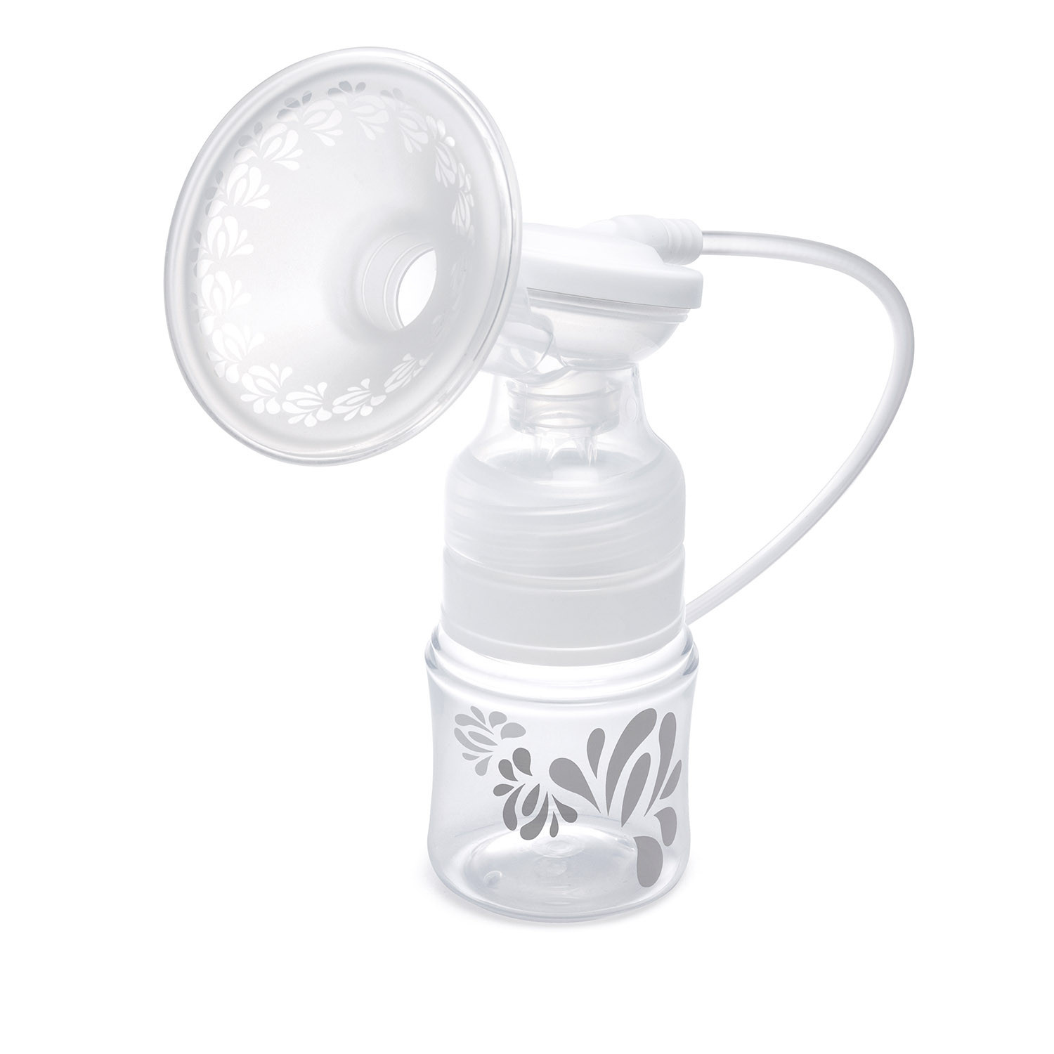 Ergonomiczny lejek wyposażony w silikonową nakładkę masującą zapewnia wysoki komfort także podczas długotrwałego odciągania.