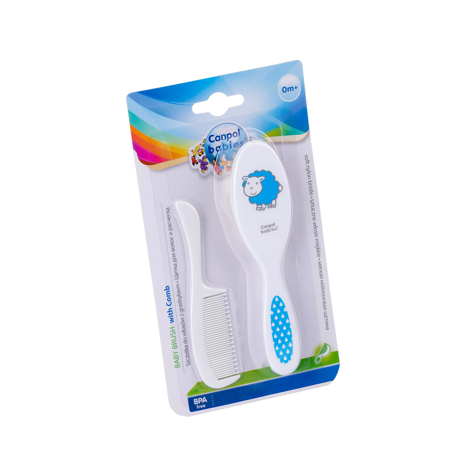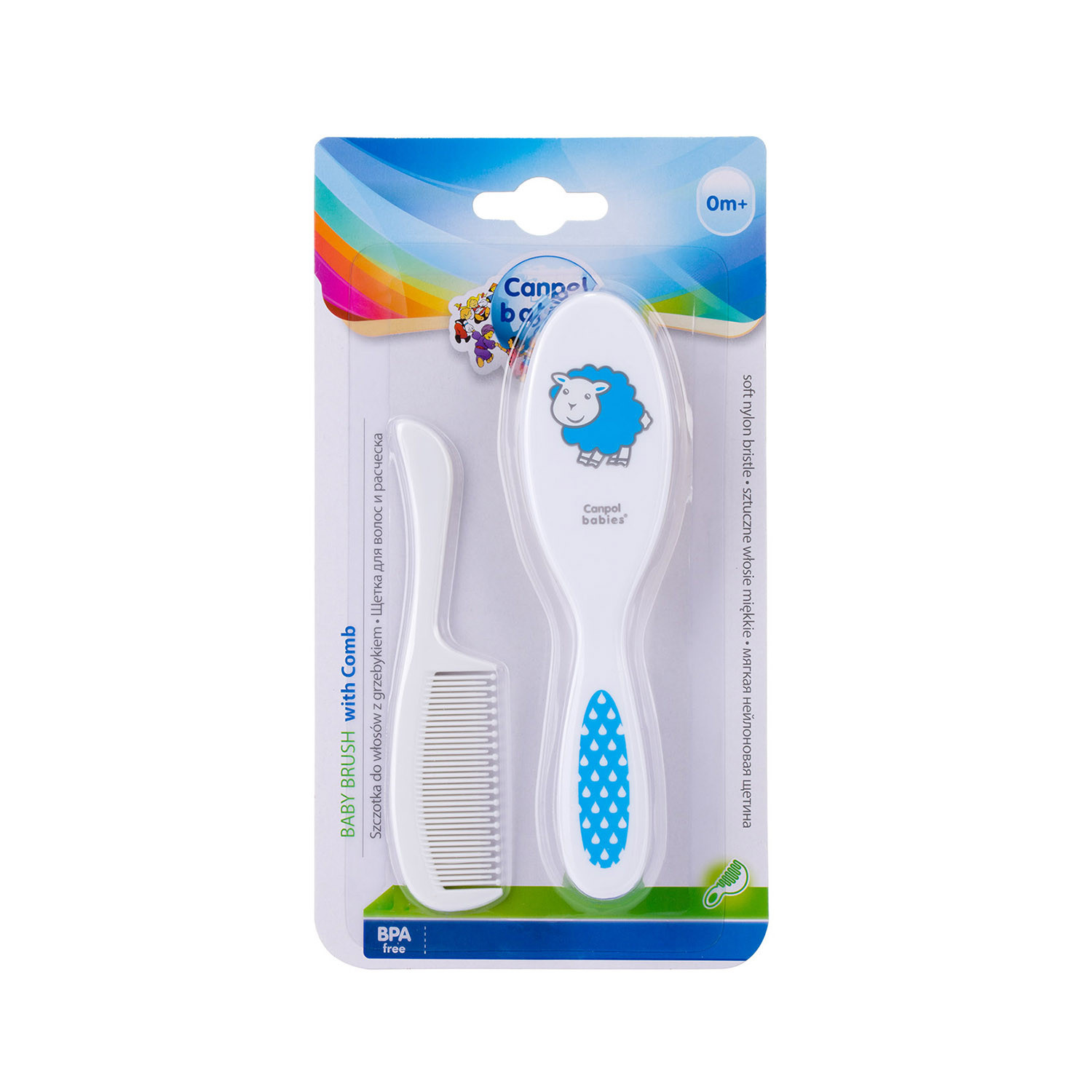 Szczotka do włosów z grzebykiem do codziennej pielęgnacji włosów dziecka. Grzebień posiada zaokrąglone ząbki, które nie podrażniają skóry. Szczotka z miękkim, sztucznym włosiem delikatnie masuje główkę malucha, nie elektryzując włosów.